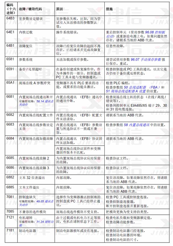 5、ABB ACS580變頻器故障代碼64B3,64E1,6581,6591,65A1,6681,6682,6683,6684,6685,6686,6882,6885,7081,7085,7121,7181