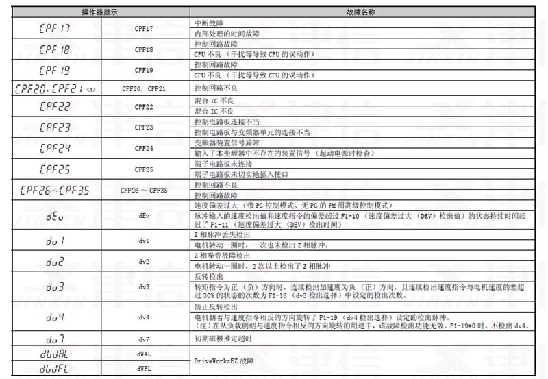 二、CPF17,CPF18,CPF19,CPF20,CPF21?????? CPF22,CPF23,CPF24,CPF25,CPF26 ~ CPF35,dEv,dv1,dv2,dv3,dv4,dv7 ,dWAL,dWFL故障代碼