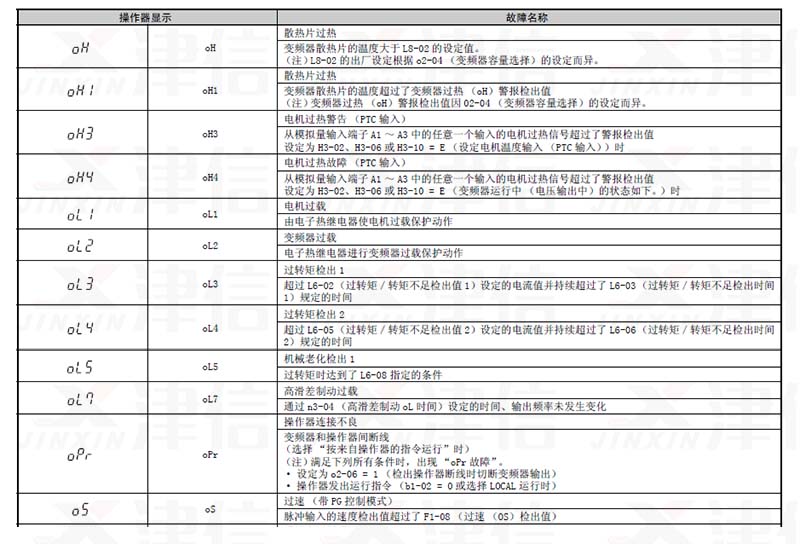 五、oH,oH1,oH3,oH4,oL1,oL2,oL3,oL4,oL5,oL7,oPr,oS故障代碼